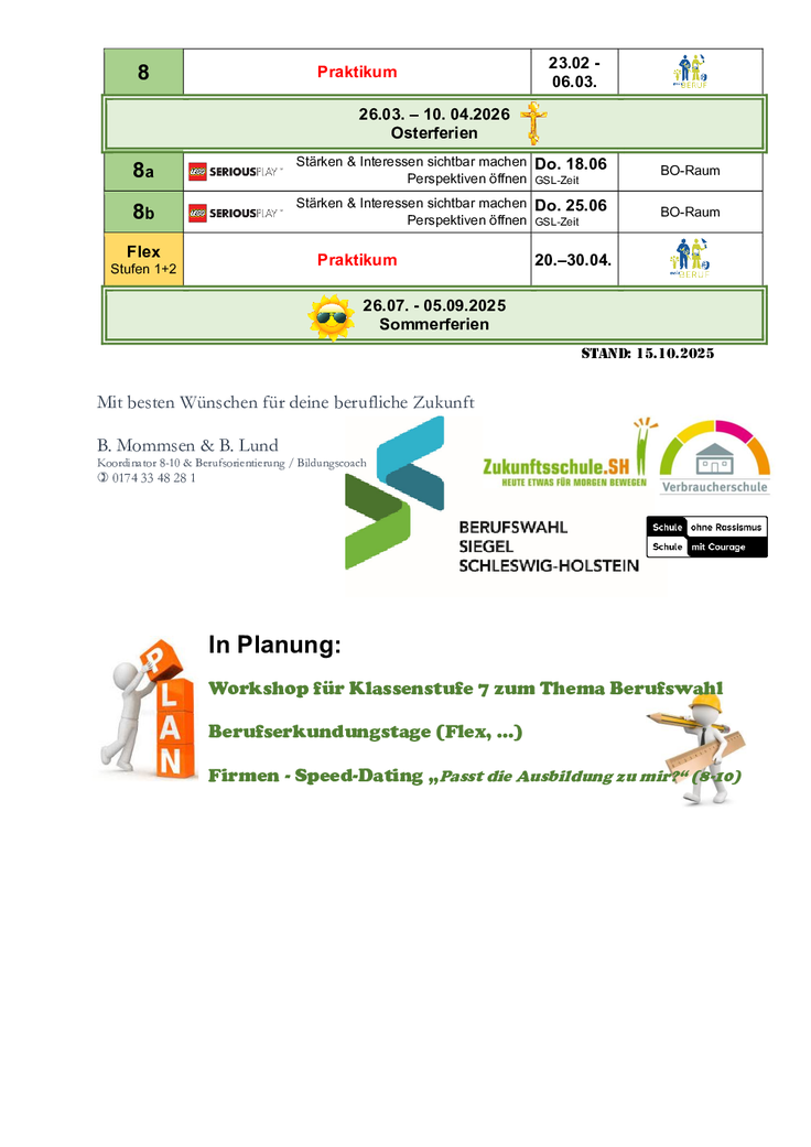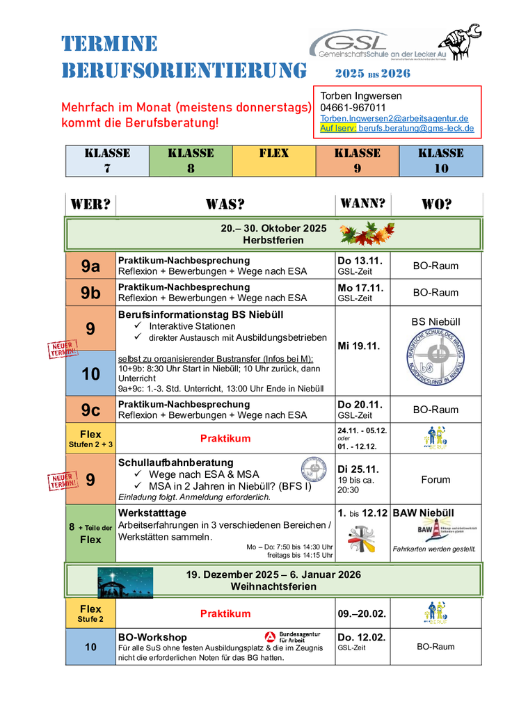 Ansprechpartner Praktikumsunterlagen Termine Berufsberatung Termine Berufsorientierung