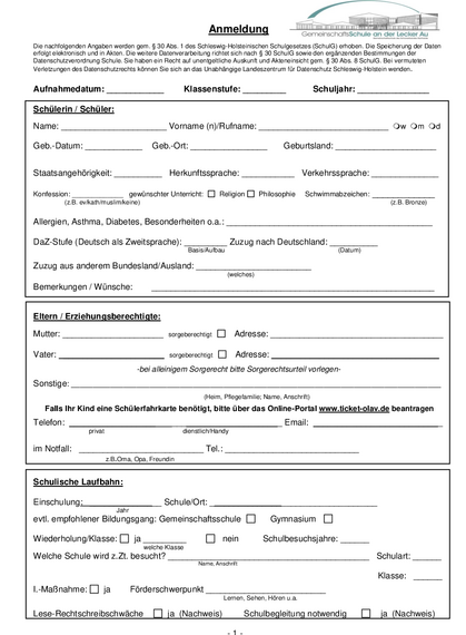 Anmeldung an der Gemeinschaftsschule an der Lecker Au